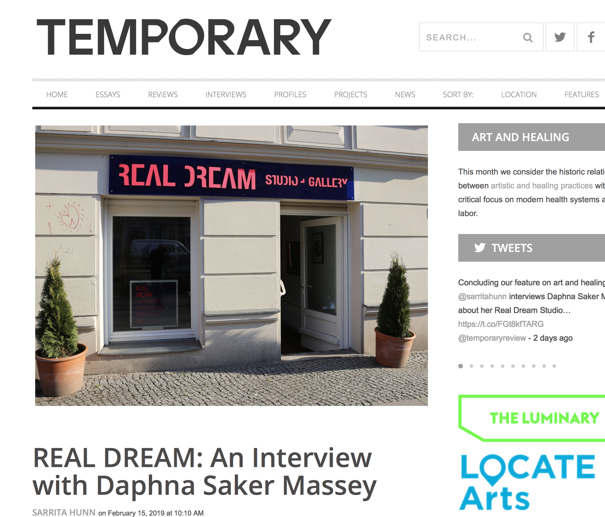 An Interview for Temporary Art Review as a part of A very interesting Art and Healing Feature. February 18, 2019